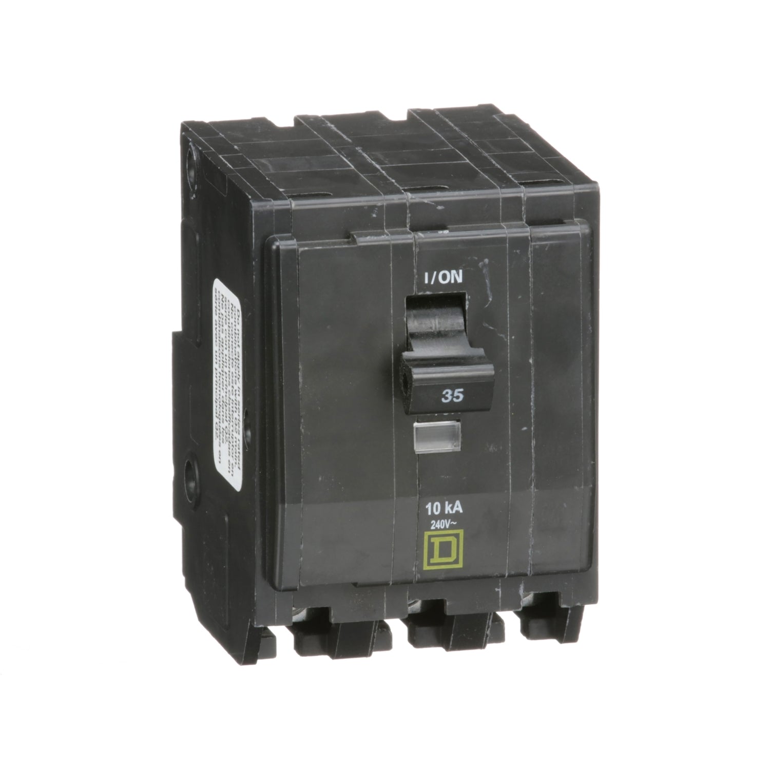 Designed for versatility, QO circuit breakers support various factory-installed accessories such as shunt trips, auxiliary switches, and alarm switches, enhancing their functionality in different applications. The QO335 model specifically is a 35A, 3-pole circuit breaker rated for operation at 120/240VAC. It offers a robust 10kA breaking capacity, ensuring reliable overcurrent protection under demanding conditions.