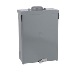 Square D QO Main Lug Loadcenter, 1-ph Fixed, 120/240 VAC, 100 A, 1 Pole, 50/60 Hz, 10 kA Interrupt, 12 Circuits, QO Breaker, Panel Breaker Mounting, 3-Wire Wiring Configuration, 6 Spaces, 8 to 1 AWG Wire, Bolt-On Mount, NEMA 3R, Galvanized Steel Housing, 8.89 in W x 4.27 in D x 12.64 in H.