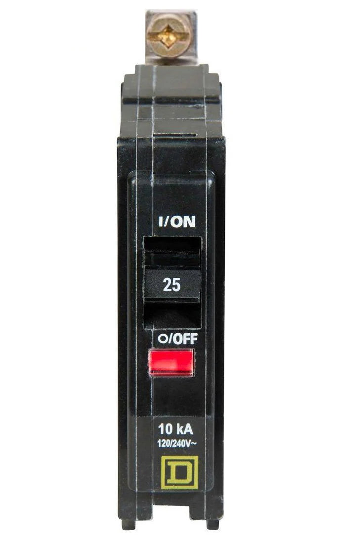The QOB125 is a mini circuit breaker from Schneider Electric, part of the QOB Series. It is designed to handle a voltage of 120/240 volts AC and has a current rating of 25 amps. This single-phase breaker features one pole, making it ideal for residential and light commercial applications.