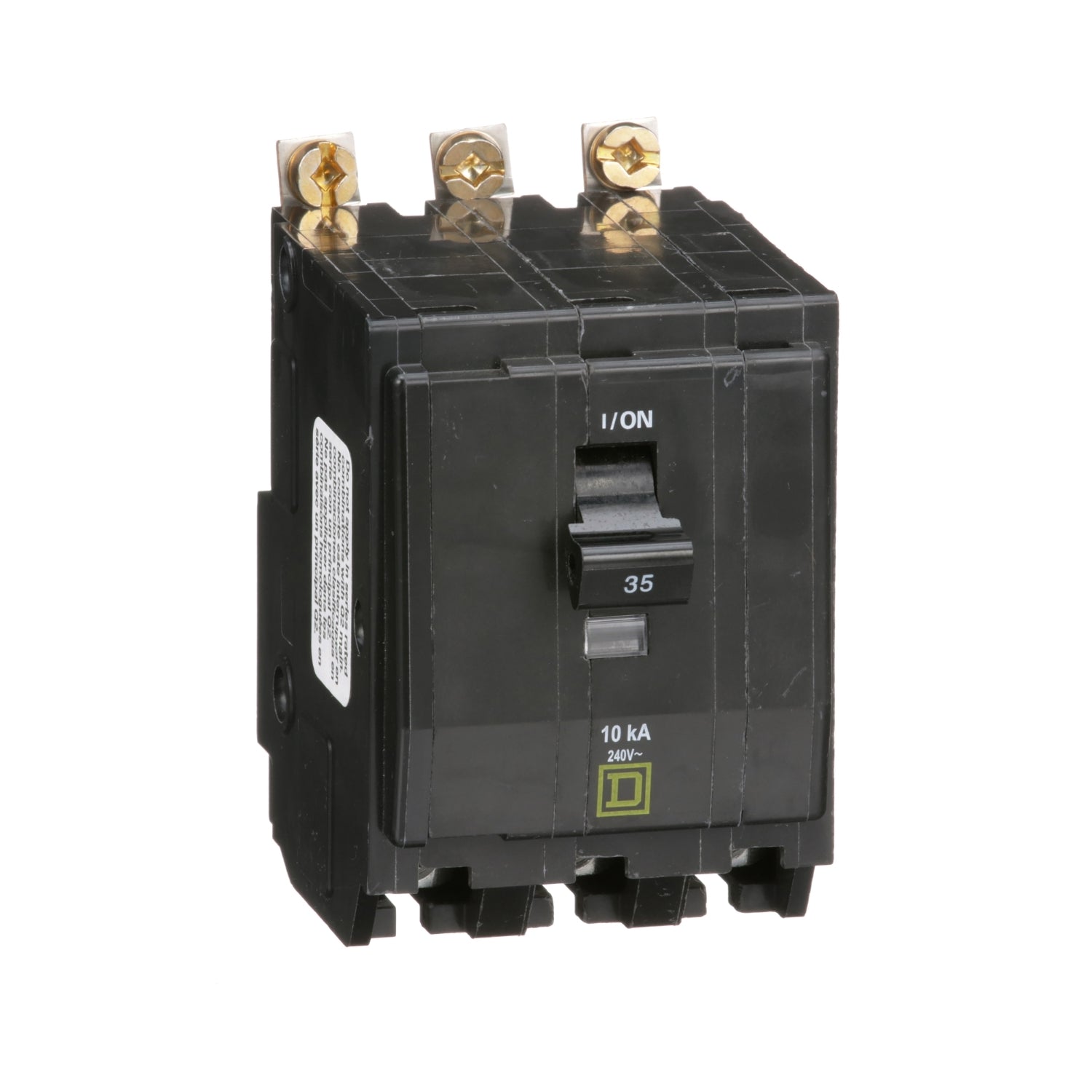 Rated at 35A for operation at 120/240VAC, the QOB335 offers a robust 10kA breaking capacity, suitable for various residential and commercial applications. It utilizes a bolt-on mounting system, facilitating secure installation in electrical panels.