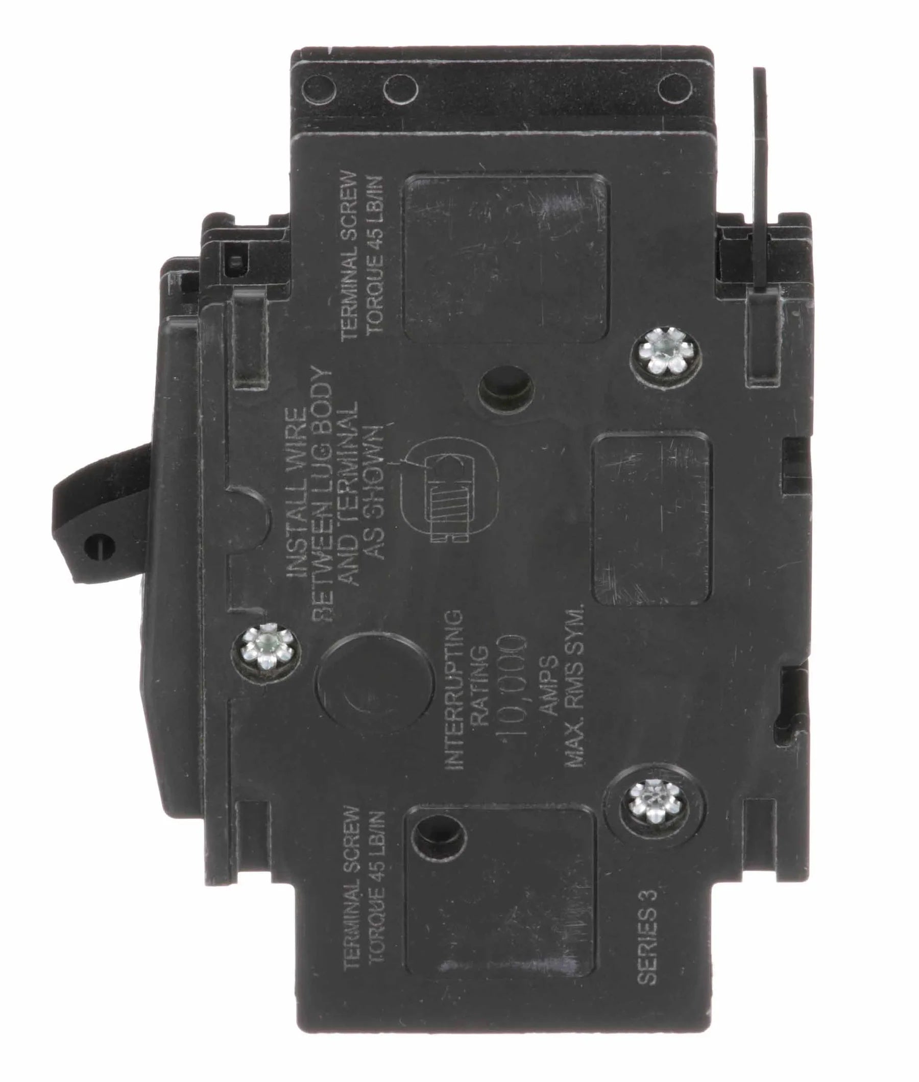 With an interrupting capacity (AIC) rating of 10,000 amps (10kA) at 120V, the QOU115 effectively safeguards electrical systems by interrupting potentially damaging currents. It is designed for bolt-on connection, facilitating straightforward installation and secure connection to electrical panels or distribution boards.