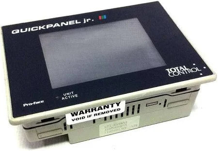 The GE Fanuc QPJ2D100S2P QuickPanel HMI is a 6-inch touchscreen display designed for industrial control and monitoring. It features a compact design with dimensions of 6.71" x 5.43" x 3.437". The unit includes a 25-pin D-shell interface supporting serial communication.