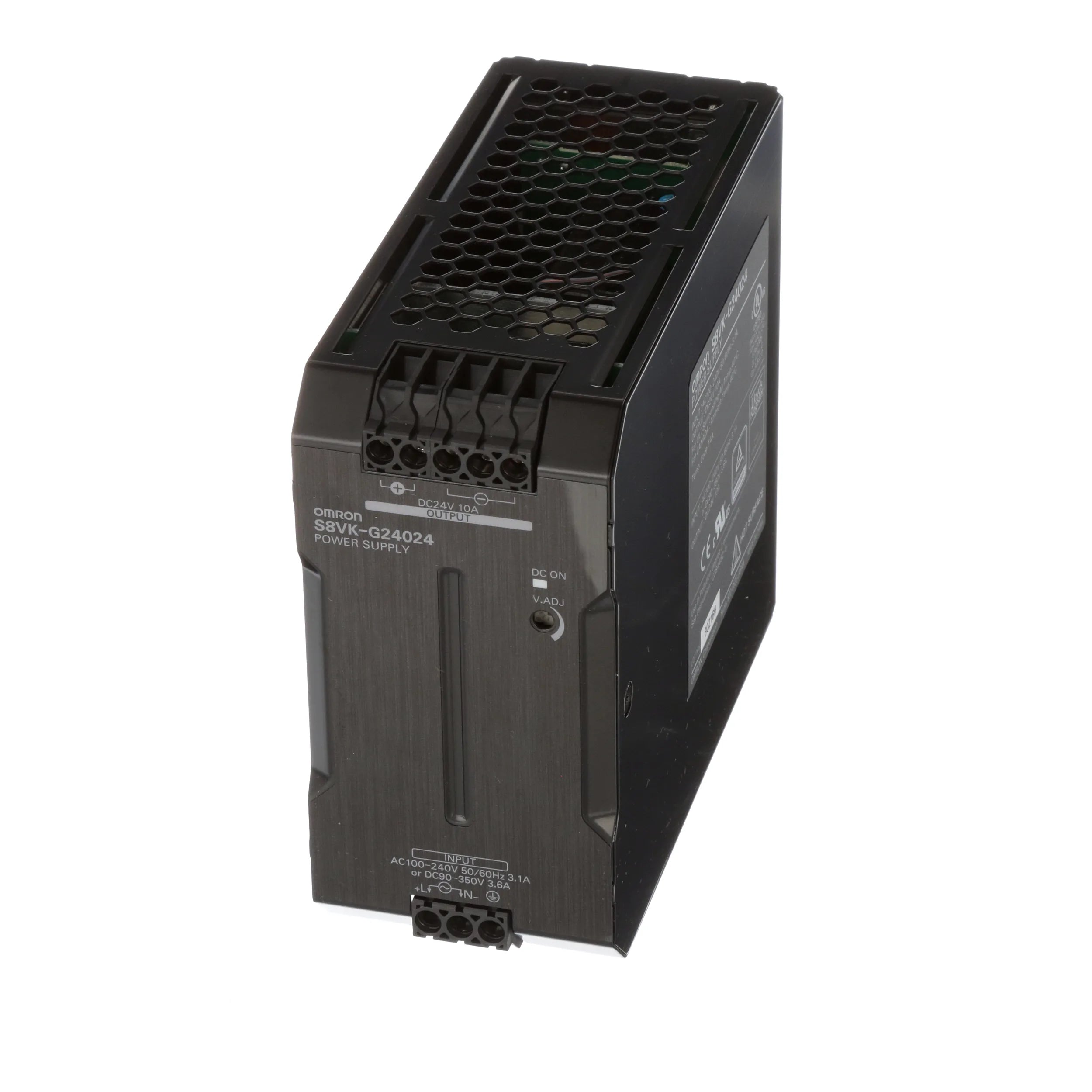 AC/DC Switch-mode power supply (SMPS PSU) - OMRON (S8VK-G series) - 10A / 24Vdc / 240W output - Single-phase (1AC) or DC input (85-264Vac (120Vac / 240Vac nom.) / 90-350Vdc (110Vdc nom.)) - Screw connections - DIN rail mounting - rated for -40°C...+70 °C ambient - IP20 - equivalent to S8VKG24024.