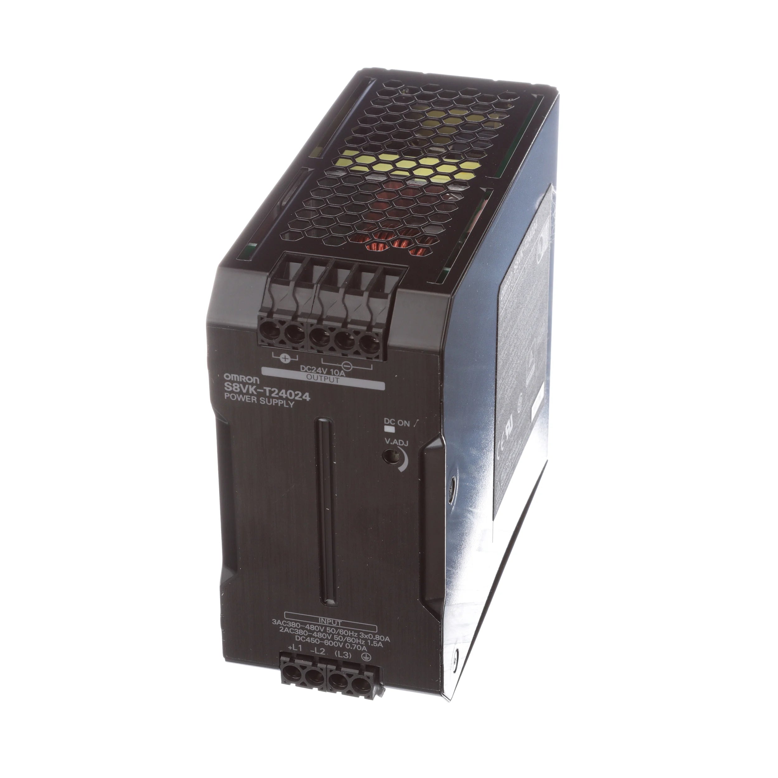 AC/DC Switch-mode power supply (SMPS PSU) - OMRON (S8VK-T series) - 10A / 24Vdc / 240W output - 3-phase (3AC) or DC or 2-phase (2AC) or DC input (320-576Vac / 340-576Vac (380Vac / 480Vac nom.) / 450-600Vdc (500Vdc / 575Vdc nom.)) - Screw connections - DIN rail mounting - rated for -40°C...+70 °C ambient - IP20 - replaces S8VT-F24024E - equivalent to S8VKT24024