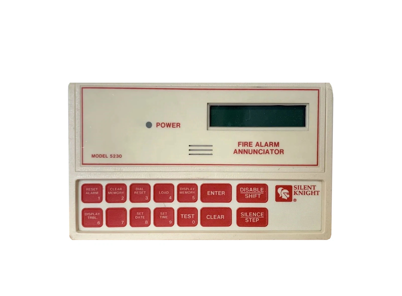 The SK-5230 is a remote annunciator from Silent Knight by Honeywell, engineered to display real-time fire alarm system data. It is part of the Silent Knight fire control ecosystem and is individually supervised by the fire alarm control panel (FACP). This model supports wiring from 12 to 18 AWG, with installation distances of up to 1000 feet, offering flexibility in large-scale buildings. The SK-5230 enables remote system programming, alarm reset, and silence functions via a clearly arranged interface.