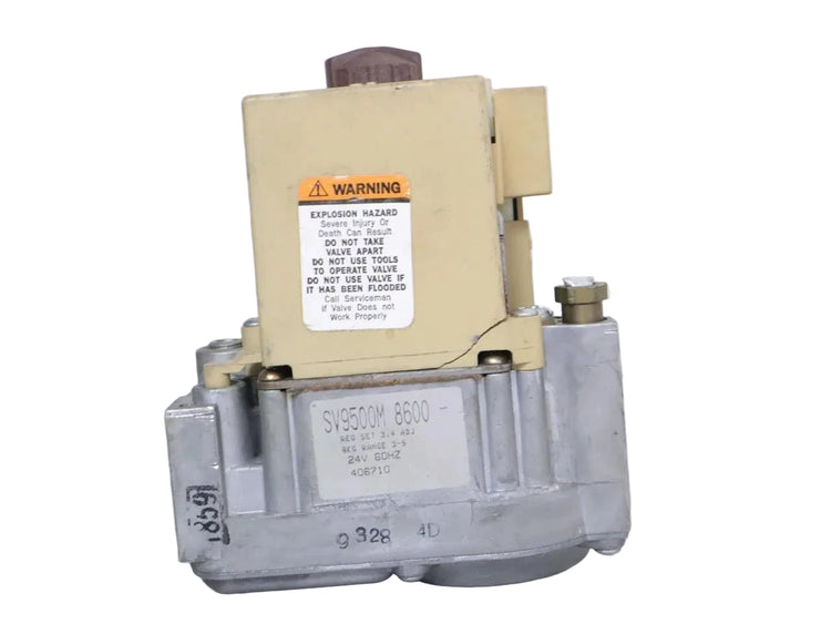 The Honeywell SV9500M8600 SmartValve gas valve is an integrated furnace gas control designed to regulate gas flow and ignition in HVAC heating systems. It combines gas valve operation with electronic ignition control to support reliable furnace startup and operation. This valve is commonly used in central furnaces, packaged units, and rooftop HVAC systems.