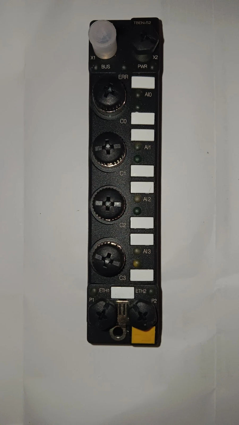 The Turck TBEN-S2-4AI is a rugged industrial Ethernet I/O module designed for precise analog signal acquisition in decentralized automation systems. It provides four high-resolution analog input channels in a compact, field-mountable housing suitable for harsh environments. This module is commonly used to collect process data from sensors directly at the machine level.