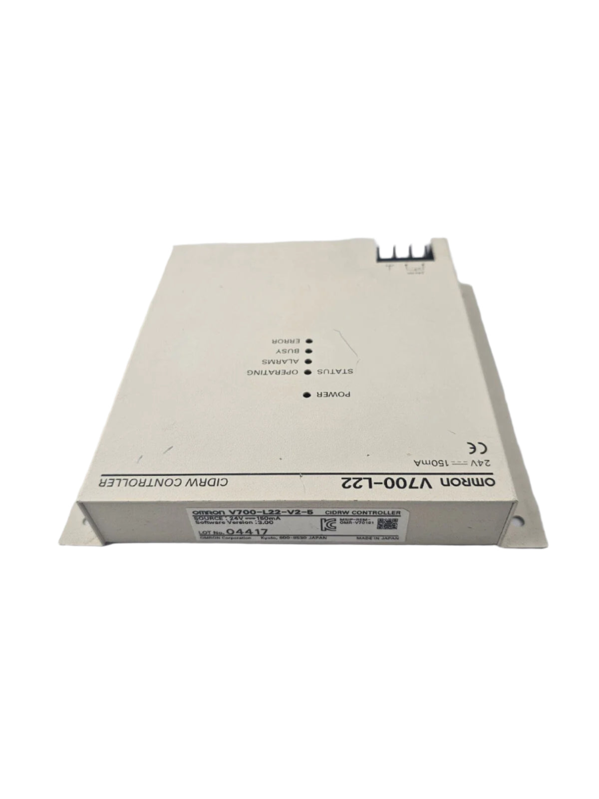 The Omron V700-L22-V2-5 is a compact RFID controller module designed for managing low-frequency Carrier ID tags in semiconductor and industrial automation systems. As part of the V700 Series, this module acts as a communication interface between Omron CIDRW heads and host systems, supporting SECS/GEM protocols for process tool integration. Featuring RS-232C/RS-485 connectivity and powered by 24 VDC, the V700-L22-V2-5 enables reliable material identification and tracking within FOUP and reticle transport systems. Though now discontinued, it remains widely used in legacy RFID-based automation environments.