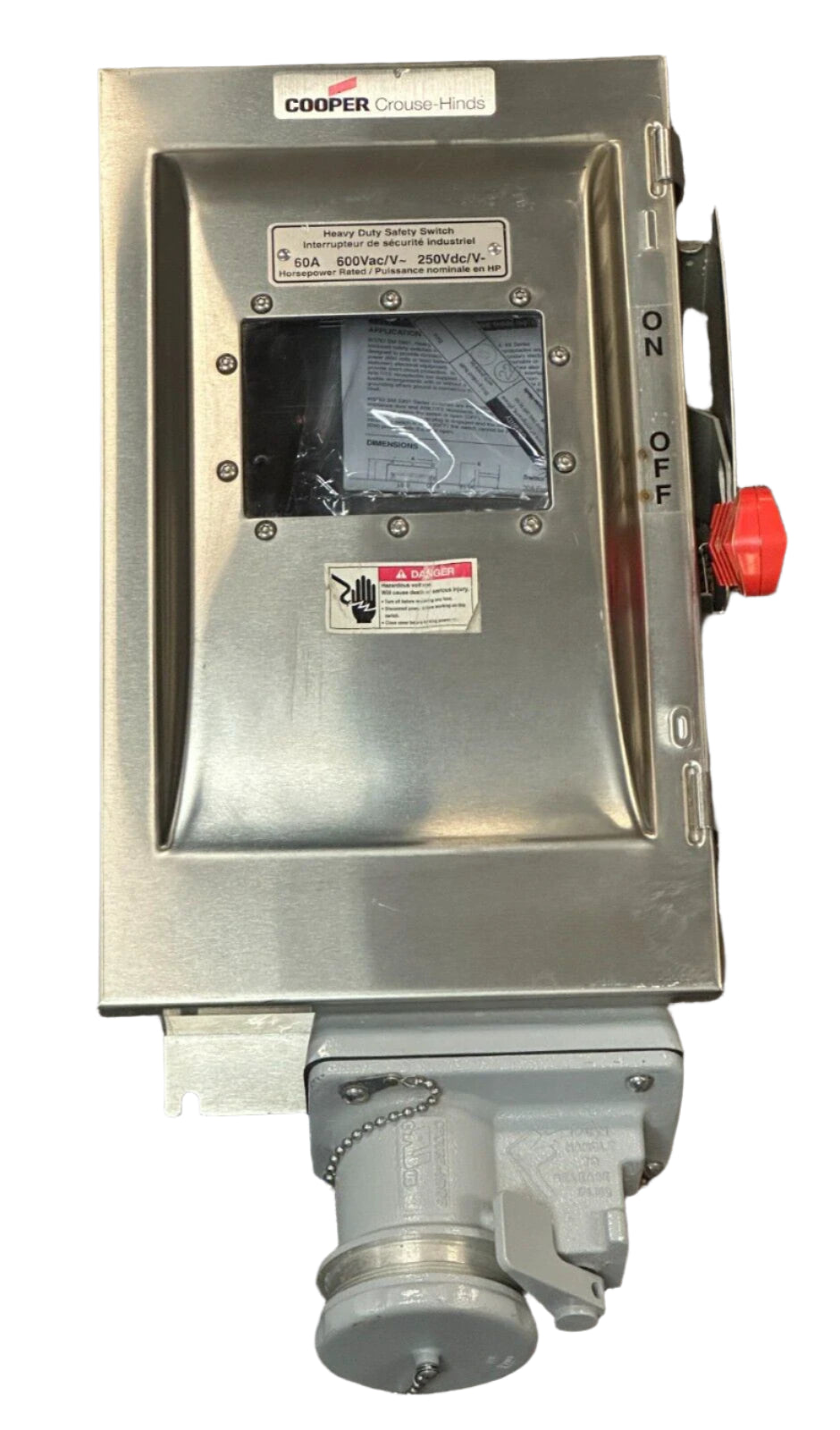 The Eaton Crouse-Hinds WSRDW63542 is a 60A, 3-wire, 4-pole non-fused interlocked receptacle with an enclosed disconnect switch, designed for safe and reliable power connections in industrial environments.