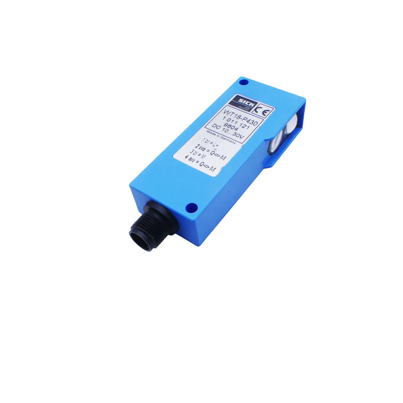The SICK WT18-P430 is a photoelectric proximity sensor designed for reliable medium-range object detection in industrial automation systems. It operates on a 10–30 V DC supply and provides stable detection across sensing distances up to 600 mm. This sensor is suited for applications requiring consistent performance and precise optical sensing.