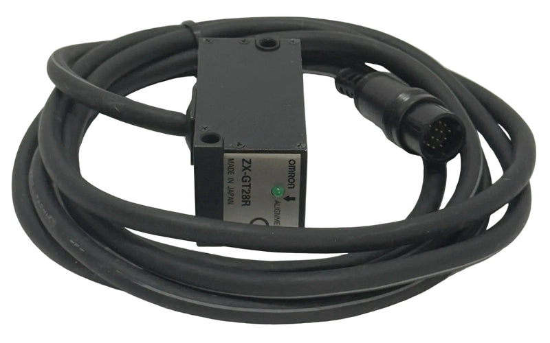The Omron ZX-GT28R is a high-precision laser displacement sensor receiver designed for accurate non-contact measurement in industrial automation and inspection systems. It uses a visible semiconductor laser to measure displacement and dimensional changes with micrometer-level resolution. This sensor is commonly applied in quality control, positioning, and thickness measurement applications.